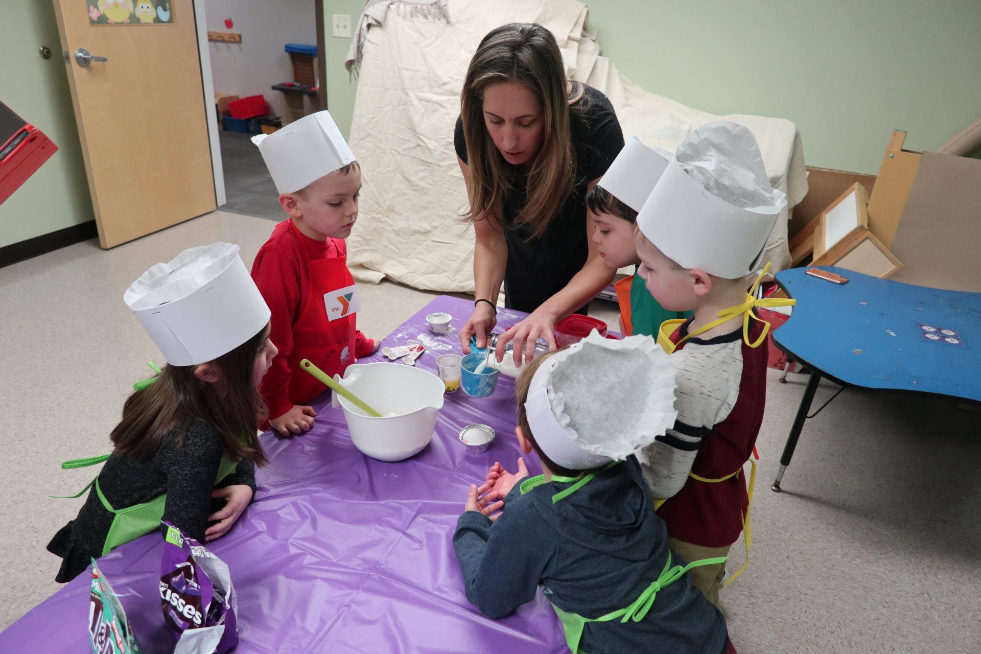 The Early Learning Center in Hanover is home to twelve classrooms, bringing crucial early education programming to children ranging from infants to kindergarten. All twelve classrooms participated in the event, each group mixing and baking muffins with a special “secret ingredient.” The kindergarteners received a special guest, as Elissa Montilio from Montilio’s Baking Company met with the class, giving instructions on baking basics and how ingredients interact to make delicious baked goods.